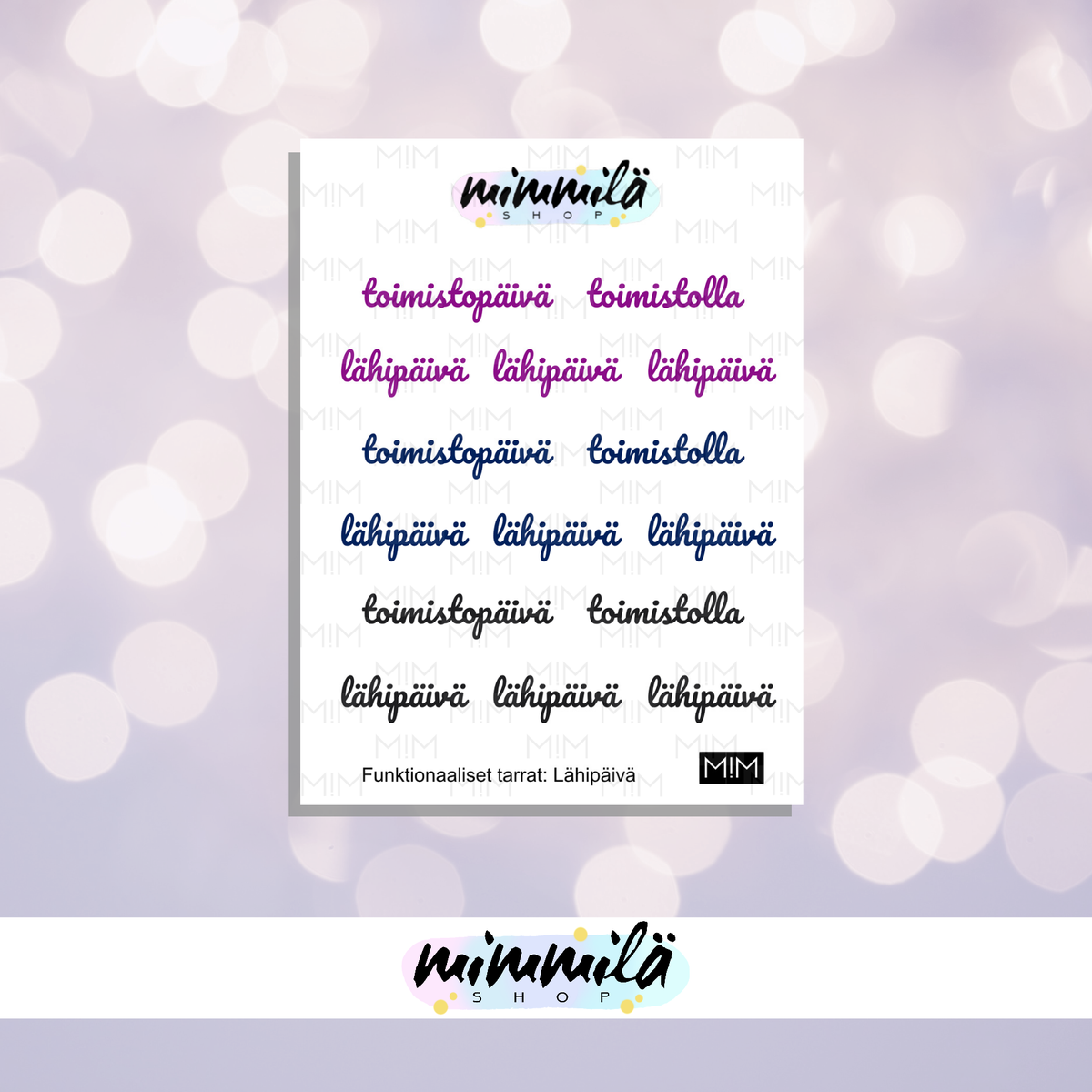 Mimmilä Shopin suunnittelema funktionaalinen tarra-arkki tekee kalenterin käytöstä hauskempaa ja visuaalisesti miellyttävämpää. Näiden monipuolisten tarrojen avulla voit merkitä helposti erilaisia toimintoja ja tapahtumia planneriisi. Olipa kyseessä viikon suunnittelu tai tärkeiden tehtävien korostaminen, kauniisti muotoillut tarrat lisäävät järjestelmällisyyttä ja persoonallisuutta kalenteriisi.