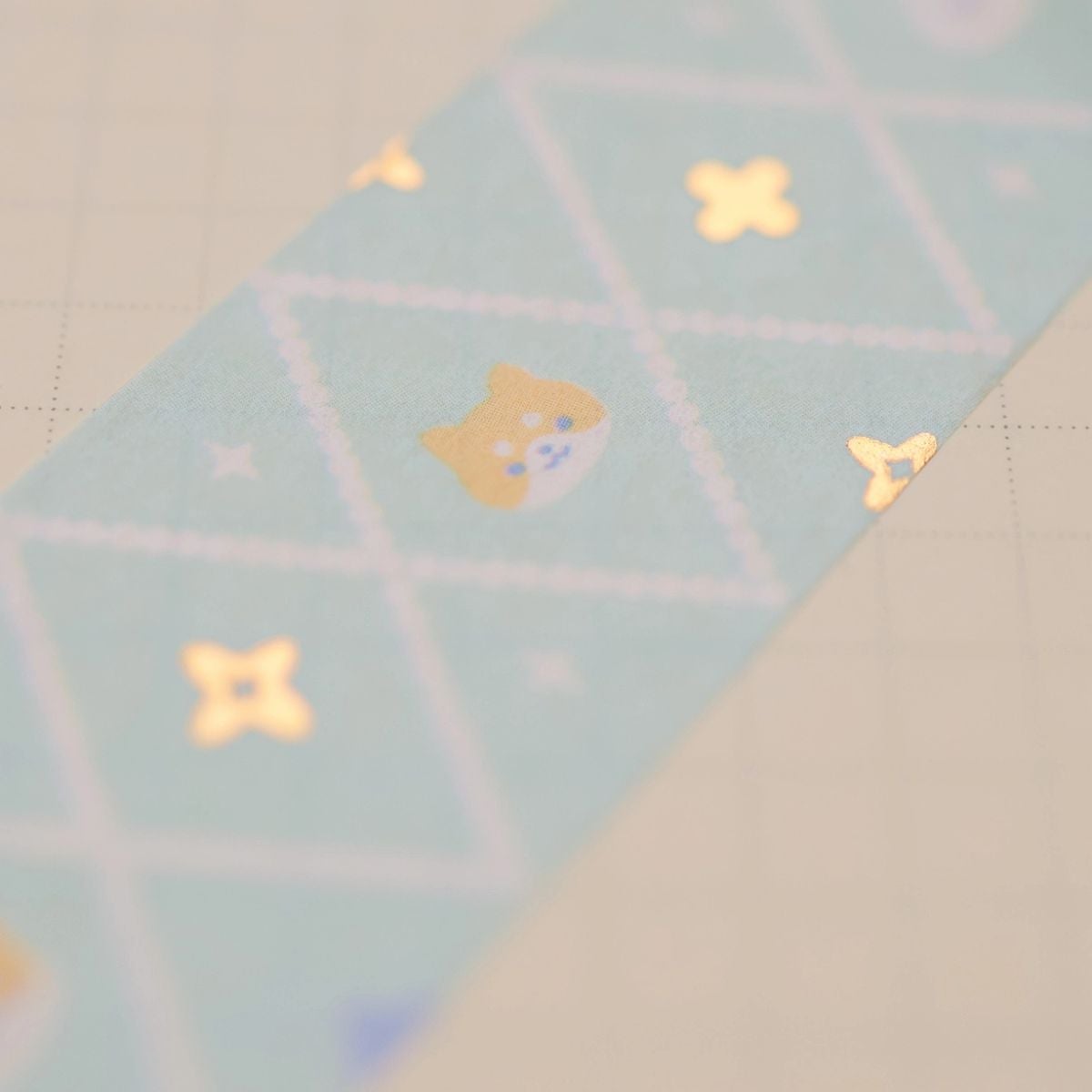 Ylisöpö washi, jossa on salmiakkikuvio mintunvihreällä taustalla. Kuvioiden keskeltä kurkistaa pieniä koiria, sekä kultafoilattuja yksityiskohtia. Teipin kuvio jatkuu saumattomasti ulkoreunoilla ja voit jatkaa kuviota seuraavalla rivillä! Tämä suloinen teippi piristää aivan varmasti washivalikoimaasi!